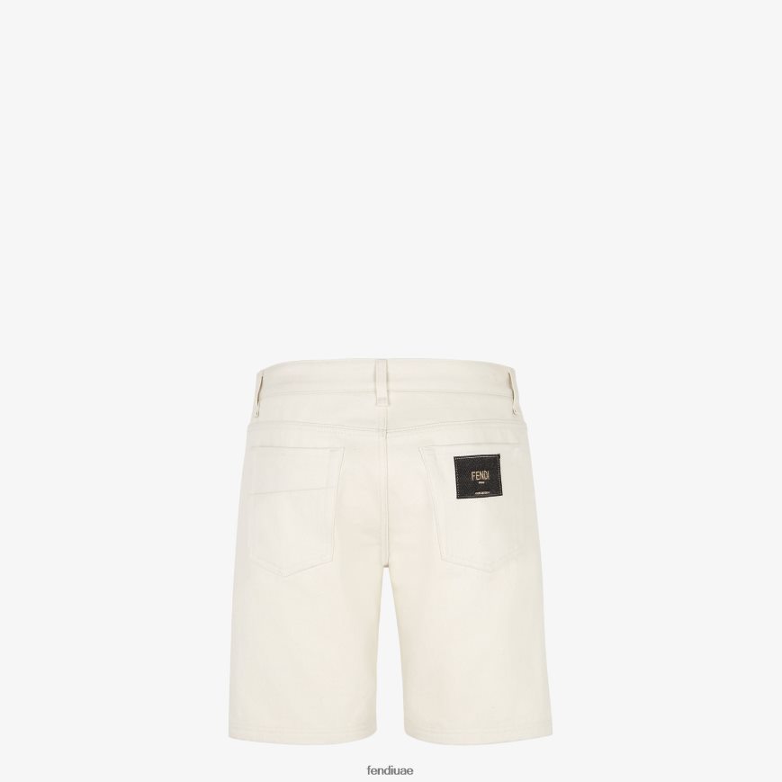 بنطال برمودا بقصة مستقيمة وخمسة جيوب. مزين بالمسامير المعدنية. إغلاق بسحاب مخفي وزر تك. مصنوع من قطن الدنيم الأبيض. مزين بشعار فندي جاكار على الجيب الخلفي.