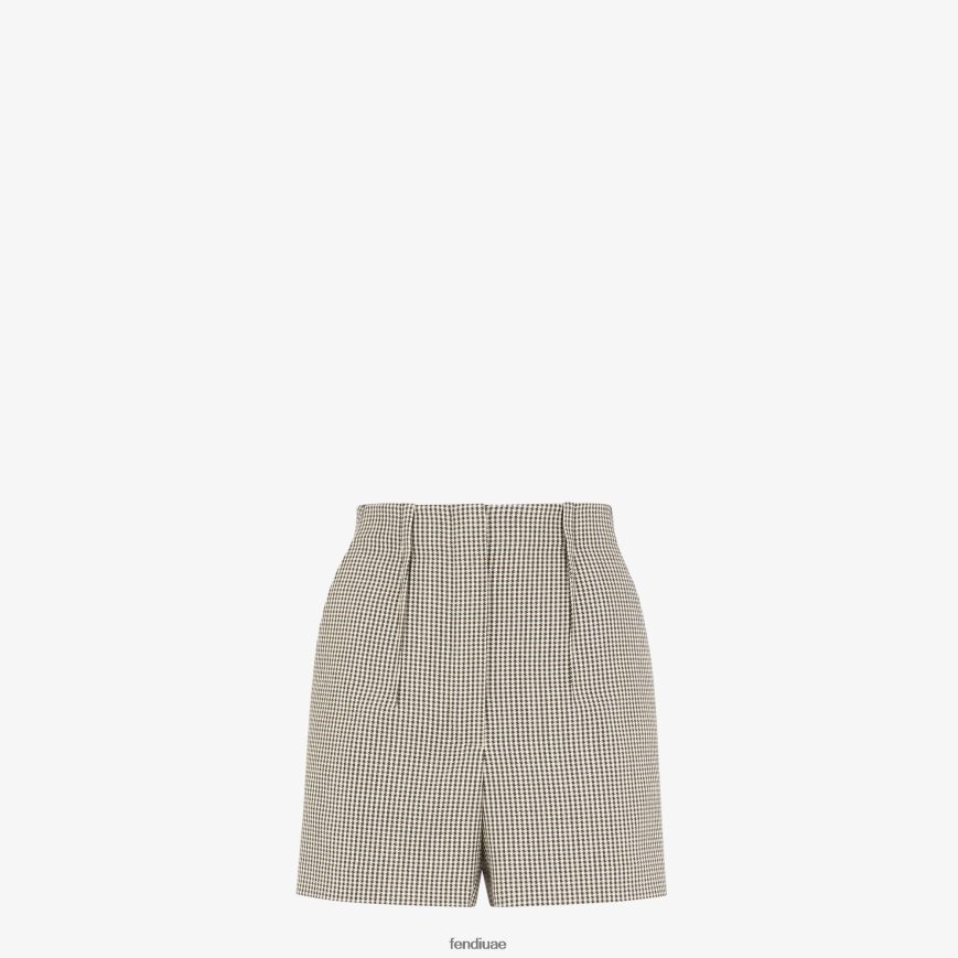 شورت من الصوف بنقشة houndstooth اللون البيج Fendi نحيف ثياب TNL80L1225