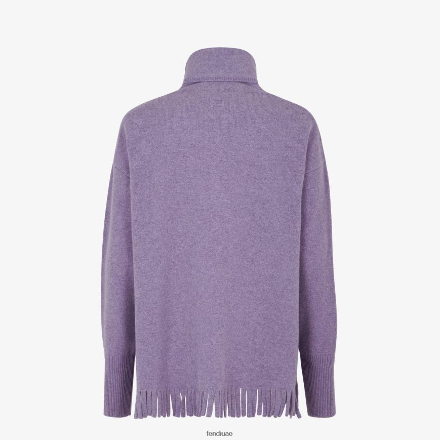 بلوفر بياقة عالية مع جيب أمامي وأكمام طويلة. مقاس عادي، بلمسة نهائية بحواف مهدبة. الأصفاد واسعة مضلع. مصنوع من خيوط الصوف الليلكية.