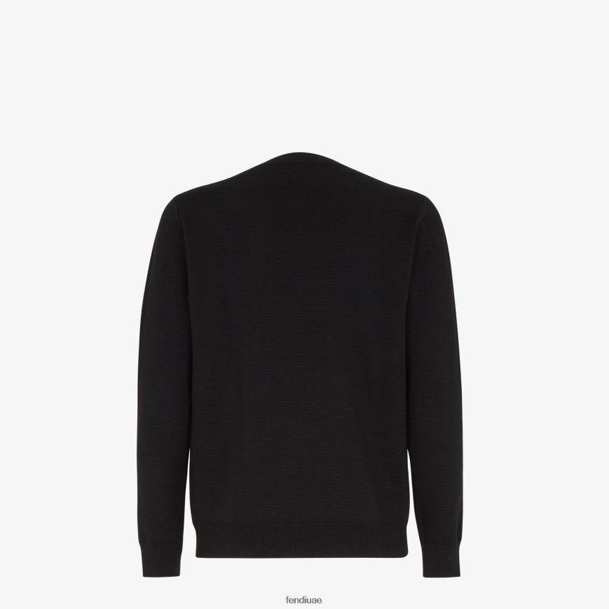 كنزة صوف أسود Fendi رجال ثياب TNL80L2102