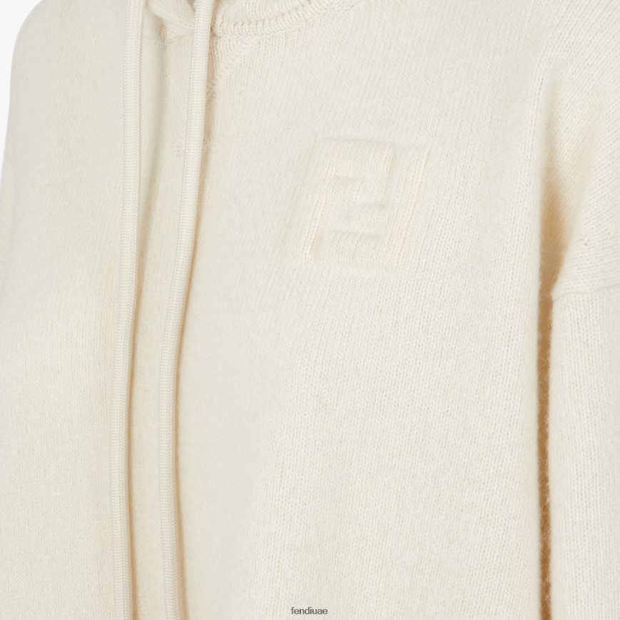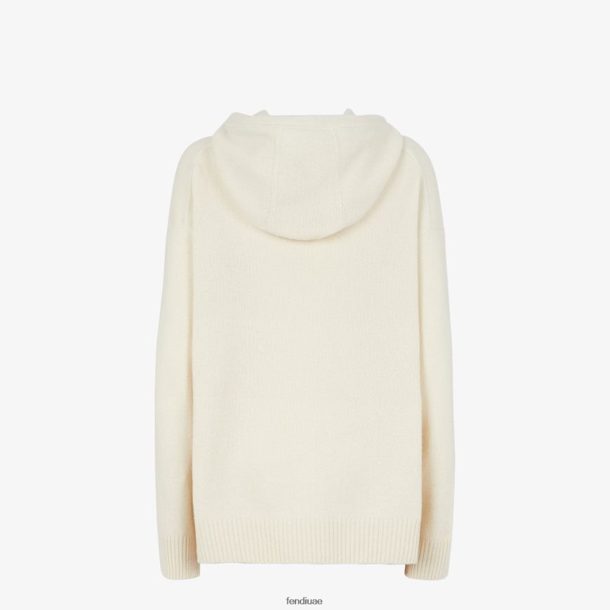 سترة الكشمير أبيض Fendi نحيف ثياب TNL80L1187