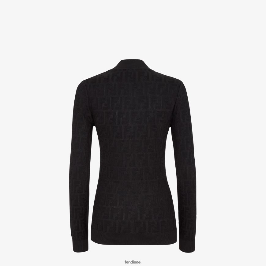 سترة ضيقة بأكمام طويلة. انتهى بحواف مضلعة. مصنوع من مزيج الفيسكوز والقطن البيئي باللون الأسود مع شعار ff على كامل التصميم.