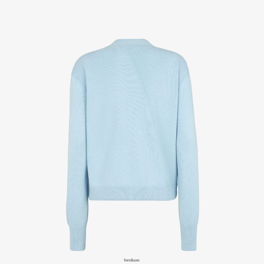 سترة من الكشمير والصوف أزرق فاتح Fendi نحيف ثياب TNL80L990