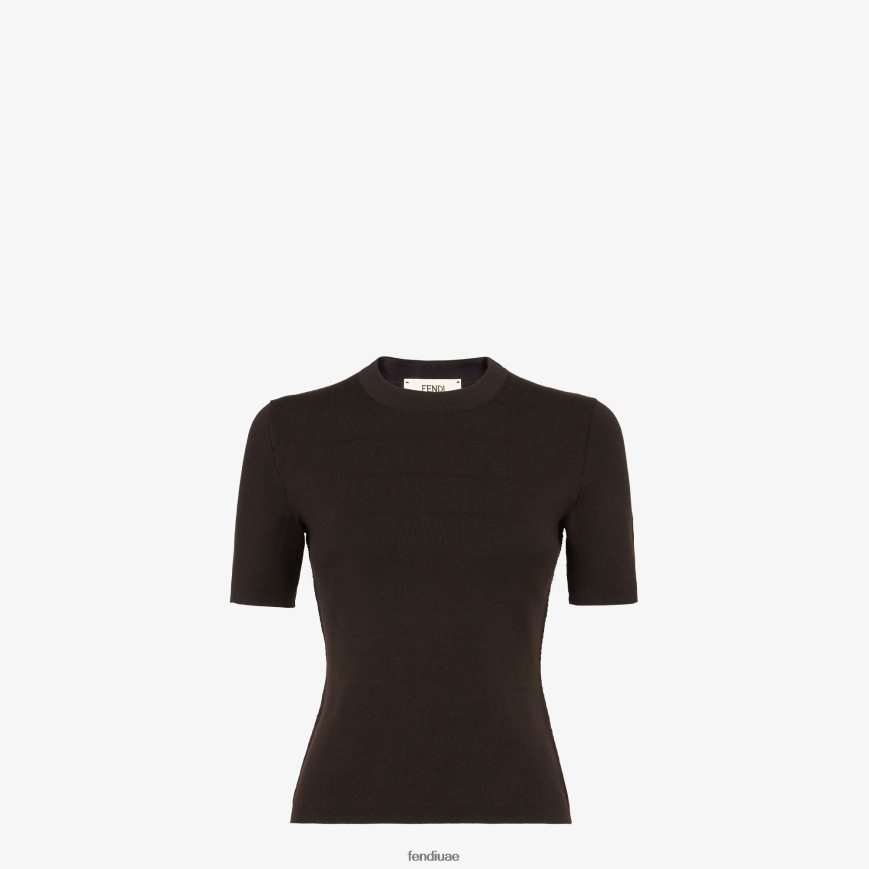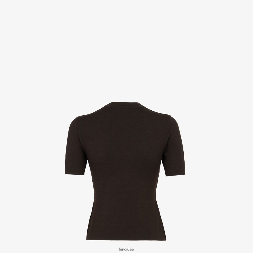 كنزة صوف بني Fendi نحيف ثياب TNL80L1155