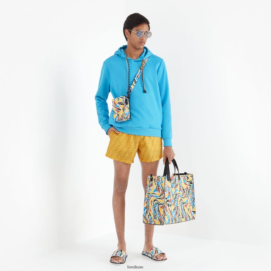 شورت سباحة بحزام خصر مطاطي ورباط. مصنوع من الليكرا مع شعار ff باللون الأصفر. مزينة بربطات عنق تحمل العلامة التجارية.