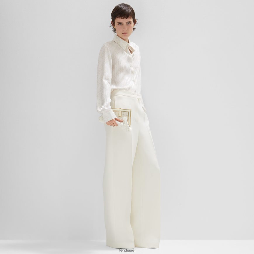 السراويل من الصوف والحرير أبيض Fendi نحيف ثياب TNL80L963