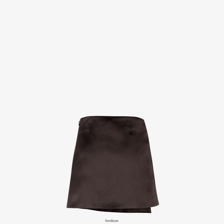 تنورة دوقة الساتان بني Fendi نحيف ثياب TNL80L935