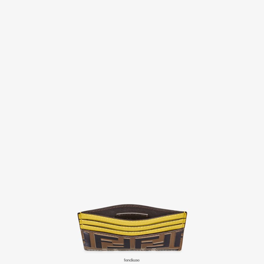 حامل بطاقات مسطح من الجلد أصفر Fendi نحيف مُكَمِّلات TNL80L1580