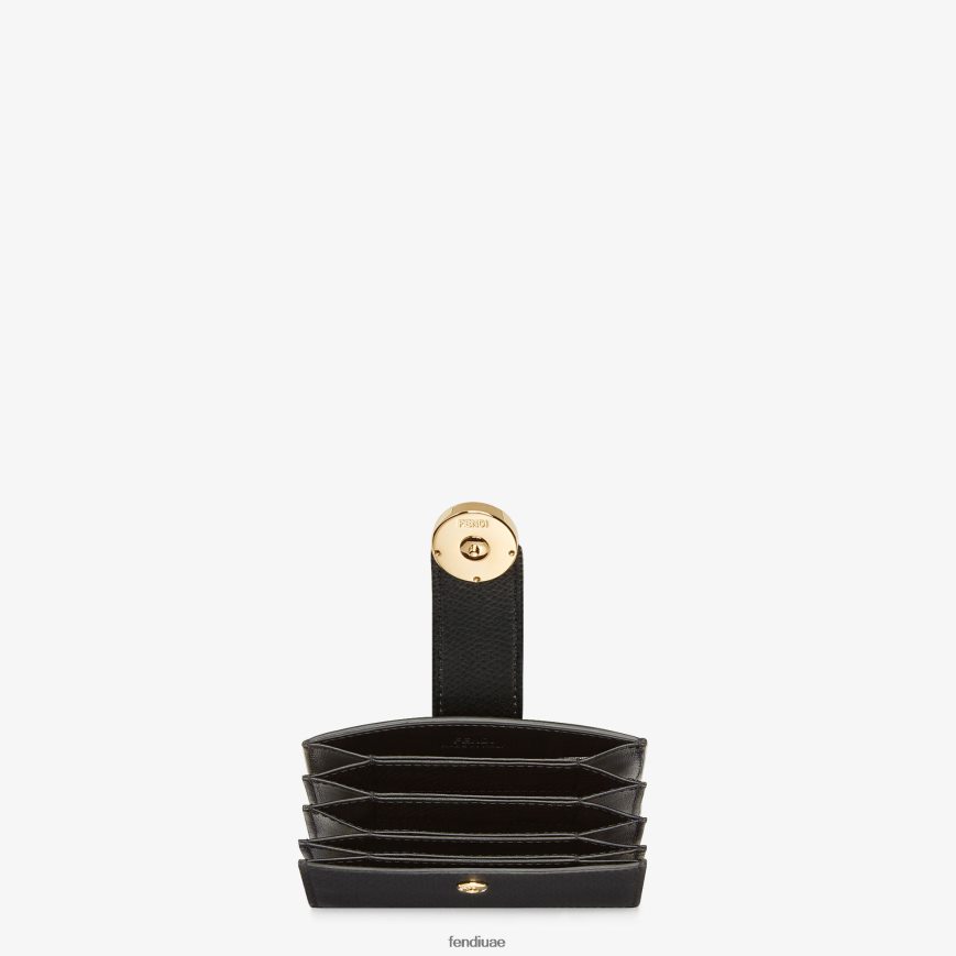 حامل بطاقات مقوى من الجلد أسود Fendi نحيف مُكَمِّلات TNL80L1605