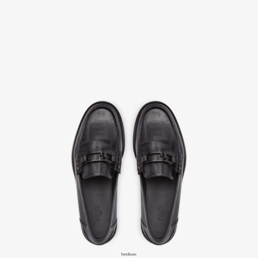حذاء لوفر بزخارف فندي أولوك. مصنوع من الجلد باللون الأسود مع شعار ff. باطن جلدية. نغمة على أدوات معدنية مطلية بالمينا.