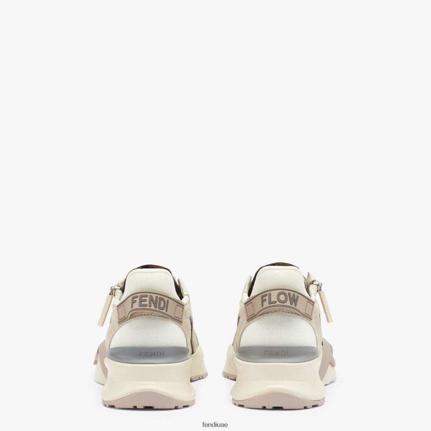 حذاء رياضي سهل الارتداء بأربطة مرنة وسحاب جانبي ونعل مموج مع نقش F. حروف فندي المتدفقة منقوشة على الكعب. مصنوع من جلد الغزال الأبيض مع حشوات من القماش التقني. مزين بتفاصيل ليكرا مع شعار ff. نعل مطاطي أبيض خفيف الوزن مع تفاصيل قطرية وردية شاحبة.