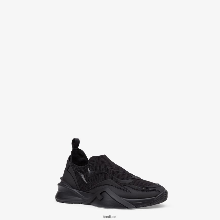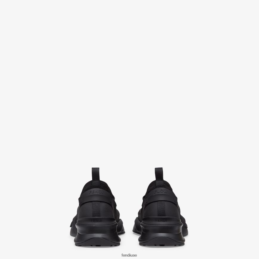 حذاء رياضي سهل الارتداء بنعل مموج مع نقش f. حروف فندي المتدفقة منقوشة على الكعب. مصنوعة من نسيج الجاكار الأسود. تفاصيل بلون على مطاط مزخرف بتقنيات حرفية مبتكرة.