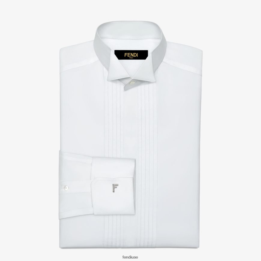 أزرار أكمام على شكل حرف F مصنوعة من المعدن ومطلية بالبلاديوم. مزين بالكريستال الأبيض.