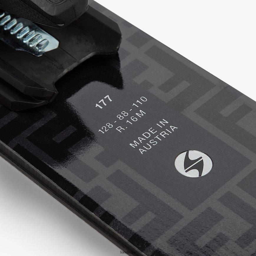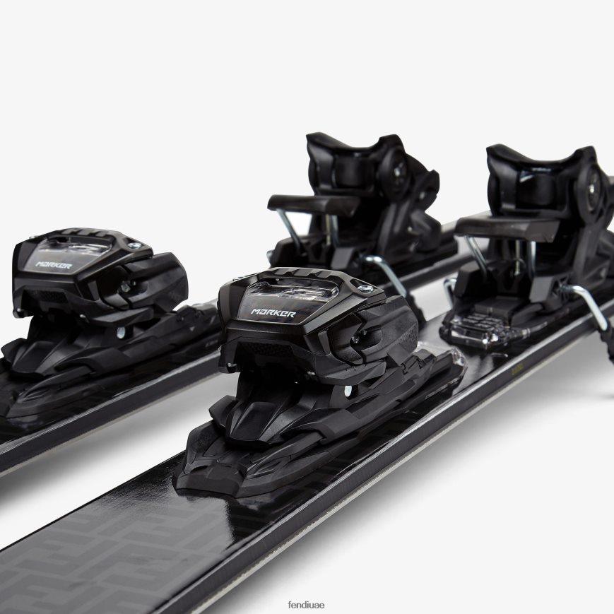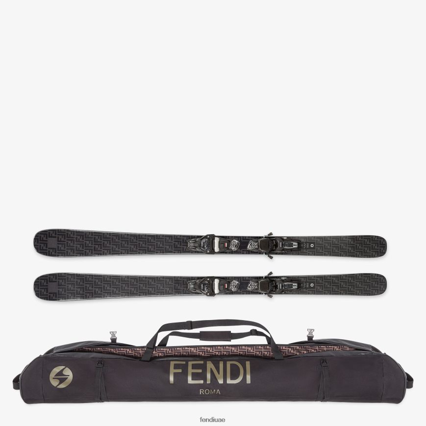 زلاجات رجالية تحمل علامة ff باللونين الأسود والرمادي. مزخرف بتفاصيل متباينة على الطرف وملحقات سوداء قابلة للتعديل.