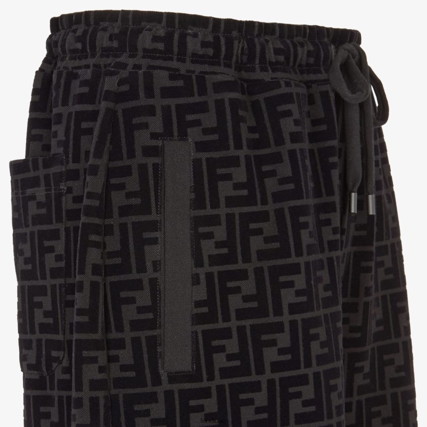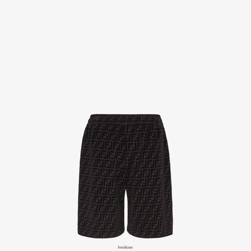 بنطال برمودا بجيوب جانبية وخصر مطاطي برباط. مصنوع من بيكيه القطن الأسود. مزين بزخارف ff متدفقة ومطبوعة في كل مكان.
