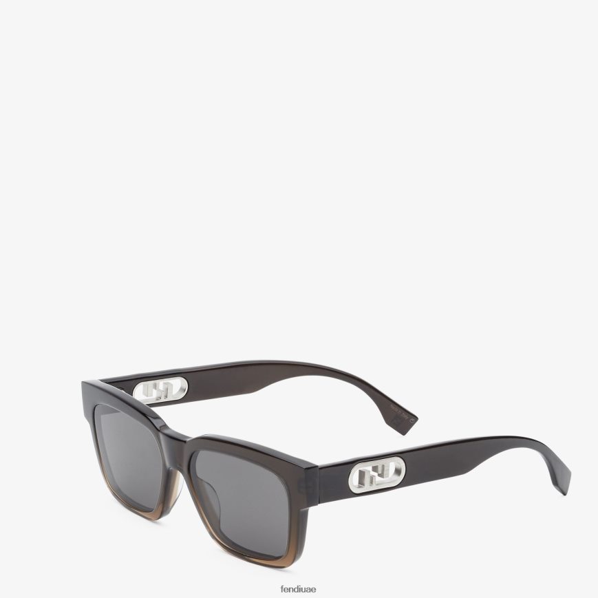 نظارة فندي أولوك مستطيلة مصنوعة من الأسيتات باللون البني المتدرج. تم تزيين المعابد بشعار o'lock المعدني المصقول بلون البلاديوم. عدسات رمادية.