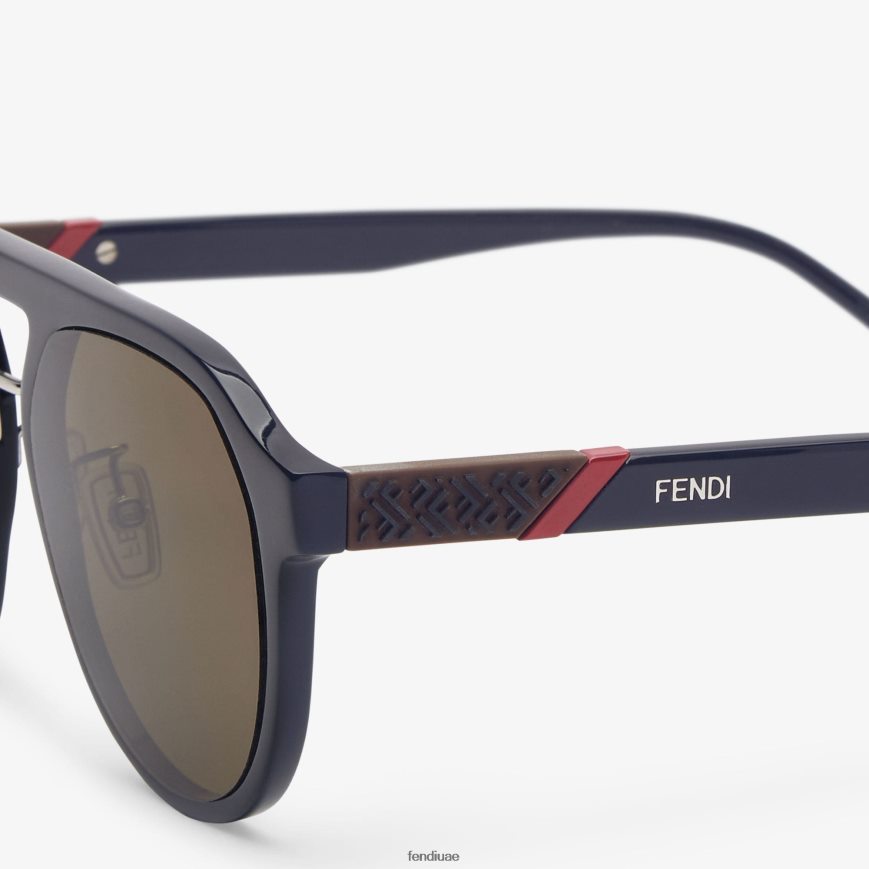 نظارات شمسية بايلوت من الأسيتات باللون الأزرق الداكن. جسر مزدوج مع تفاصيل من المعدن بلون البلاديوم. تكتمل الأذرع بإدخال مطاطي بني مع ff منقوش وتفاصيل قطرية حمراء. منصات الأنف قابلة للتعديل. لوحة معدنية تحمل شعار فندي. عدسات بنية.