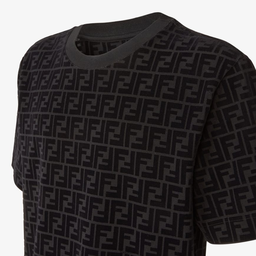 تي شيرت كبير الحجم بأكمام قصيرة ورقبة دائرية. مصنوعة من بيكيه القطن الأسود. مزين بزخارف ff متدفقة ومطبوعة في كل مكان.