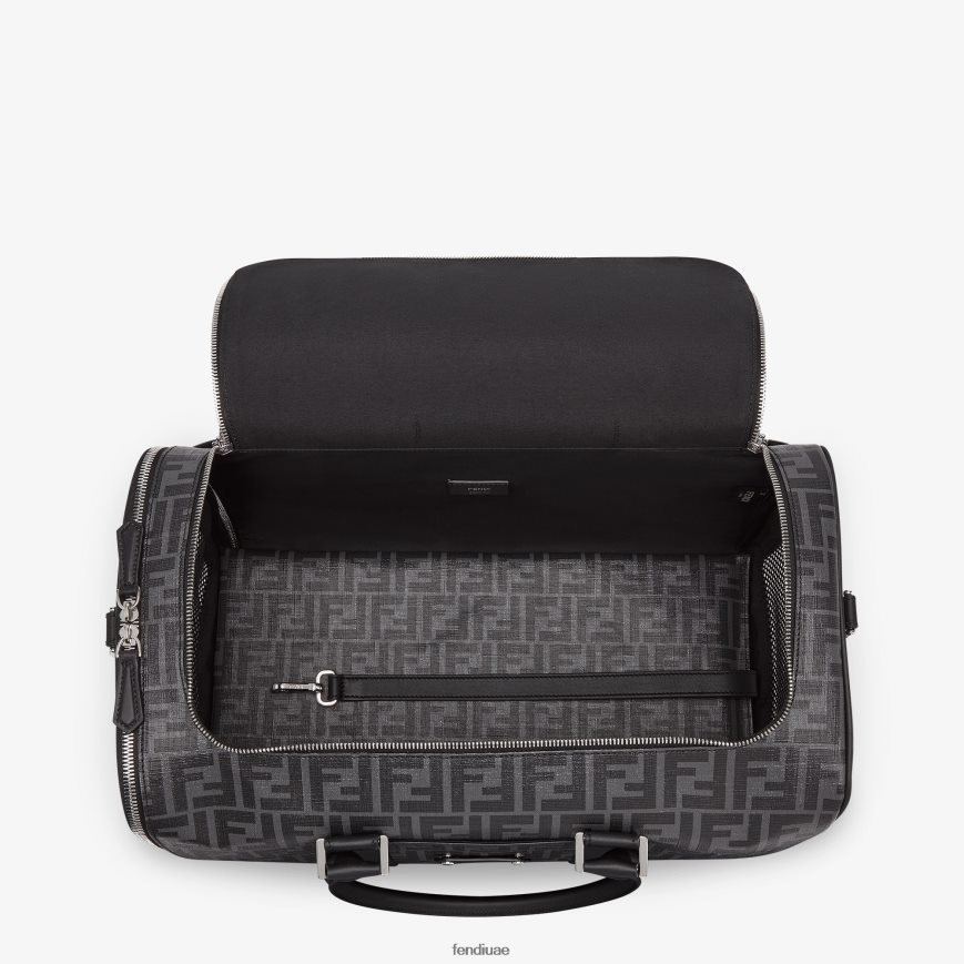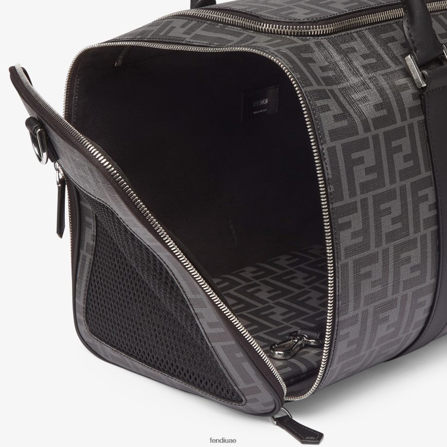 حاملة للكلاب بمقبض مزدوج وحزام كتف منسوج قابل للفصل. فتحتان بسحاب منزلق مزدوج وشبكة شبكية على الجانبين. مصنوع من القماش مع شعار ff باللونين الأسود والرمادي، ومزين بتفاصيل من الجلد الأسود. يتميز بوسادة قابلة للإزالة من القماش. أدوات معدنية مطلية بالبلاديوم.