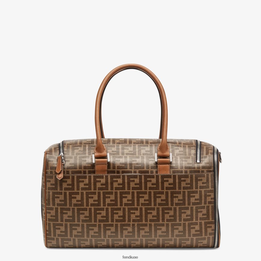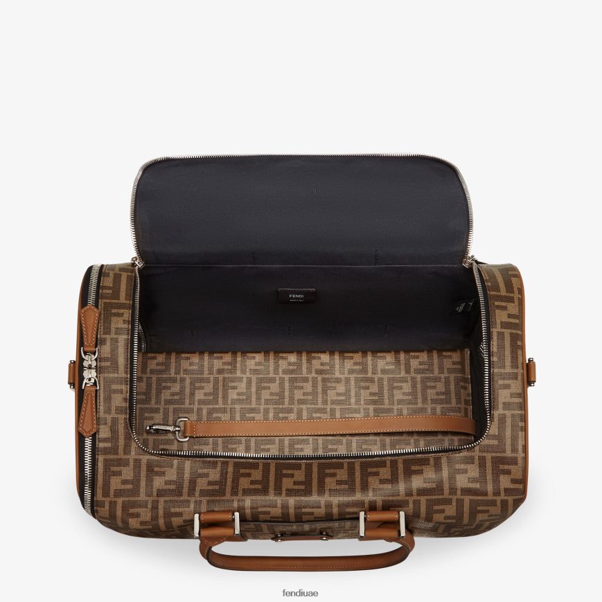 حاملة للكلاب بمقبض مزدوج وحزام كتف منسوج قابل للفصل. فتحتان بسحاب منزلق مزدوج وإدخالات شبكية على الجانبين. مصنوعة من القماش بزخارف ff باللون البني والتبغ، ومزينة بتفاصيل جلدية وعلامة قابلة للتخصيص تتميز بوسادة قماش ff قابلة للإزالة. أدوات معدنية مطلية بالبلاديوم.