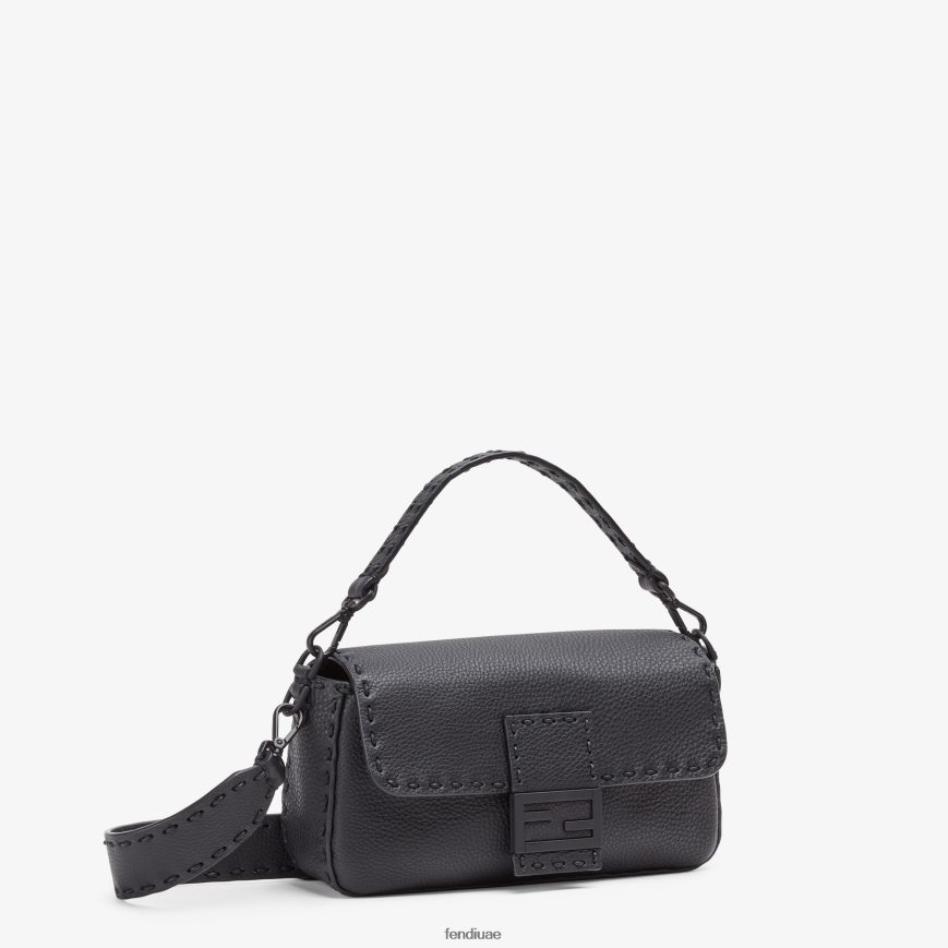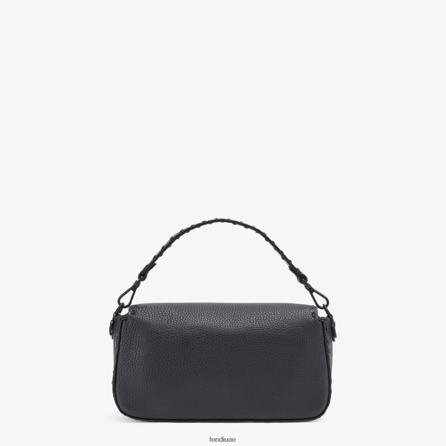 حقيبة باغيت مصنوعة من جلد cuoio romano باللون الأسود ومزينة بدرزات متناغمة ومخيطة يدويًا. قلاب مربع مع إغلاق مغناطيسي على شكل حرف FF.