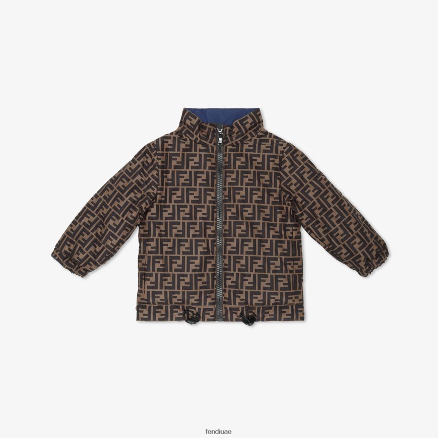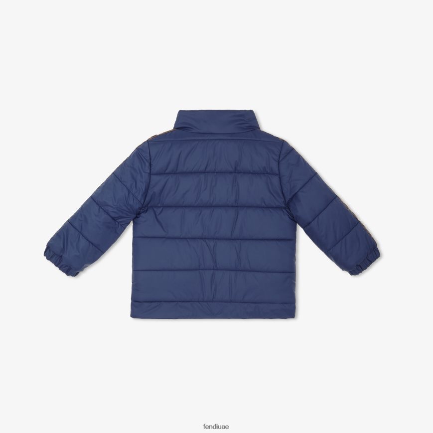 سترة ذات وجهين باللون الأزرق الداكن مع شعار موضة Fendi أطفال ثياب TNL80L2936
