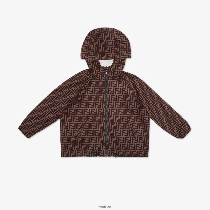 سترة واقية للصغار ذات وجهين مصنوعة من النايلون. أحد الجانبين باللون الأبيض الصلب مع أشرطة تحمل شعار ff، والآخر عليه طبعة ff بلون التبغ بالكامل.