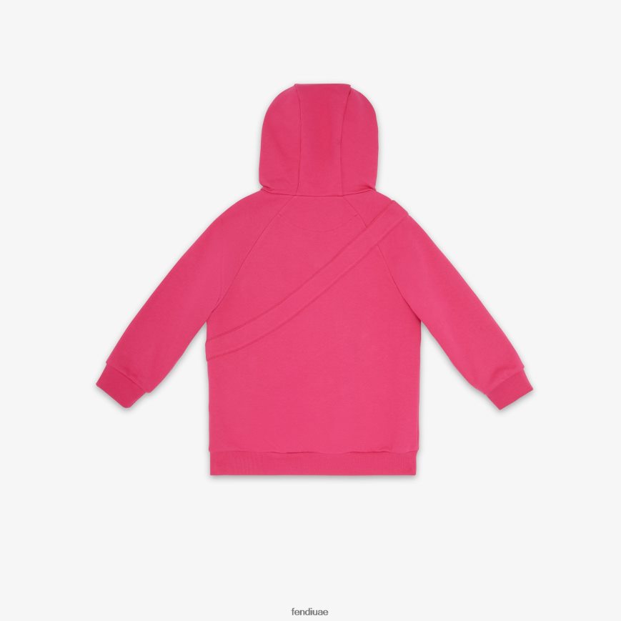 سويت شيرت قطن فوشيا كبير الحجم للصغار مع غطاء رأس وخبز باجيت كبير من الأمام.