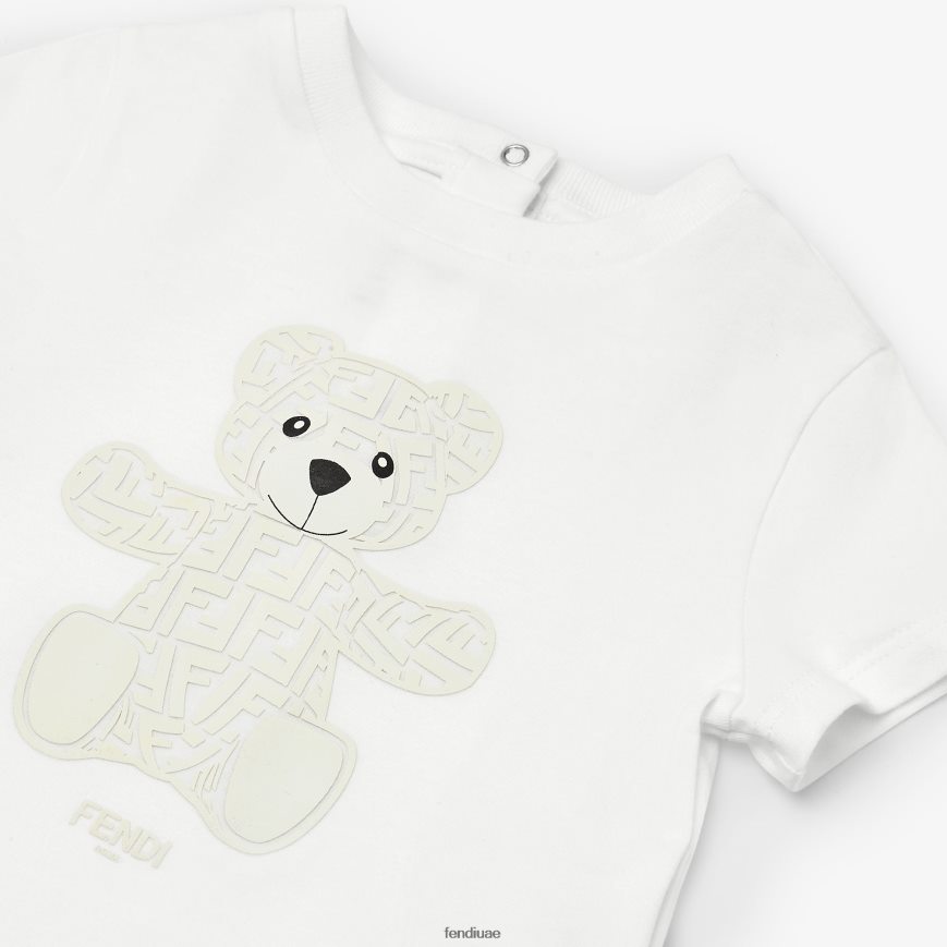 تي شيرت جيرسي تيدي بير أبيض Fendi أطفال ثياب TNL80L2797