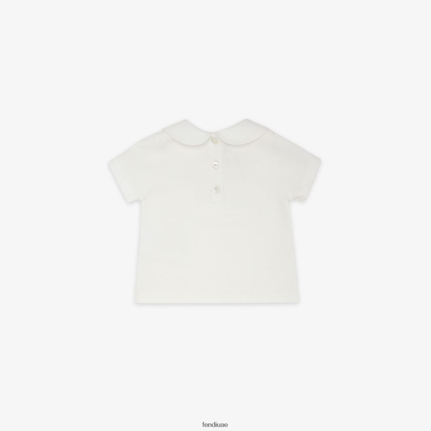 تي شيرت جيرسي للأطفال مع تطريز أبيض Fendi أطفال ثياب TNL80L2770