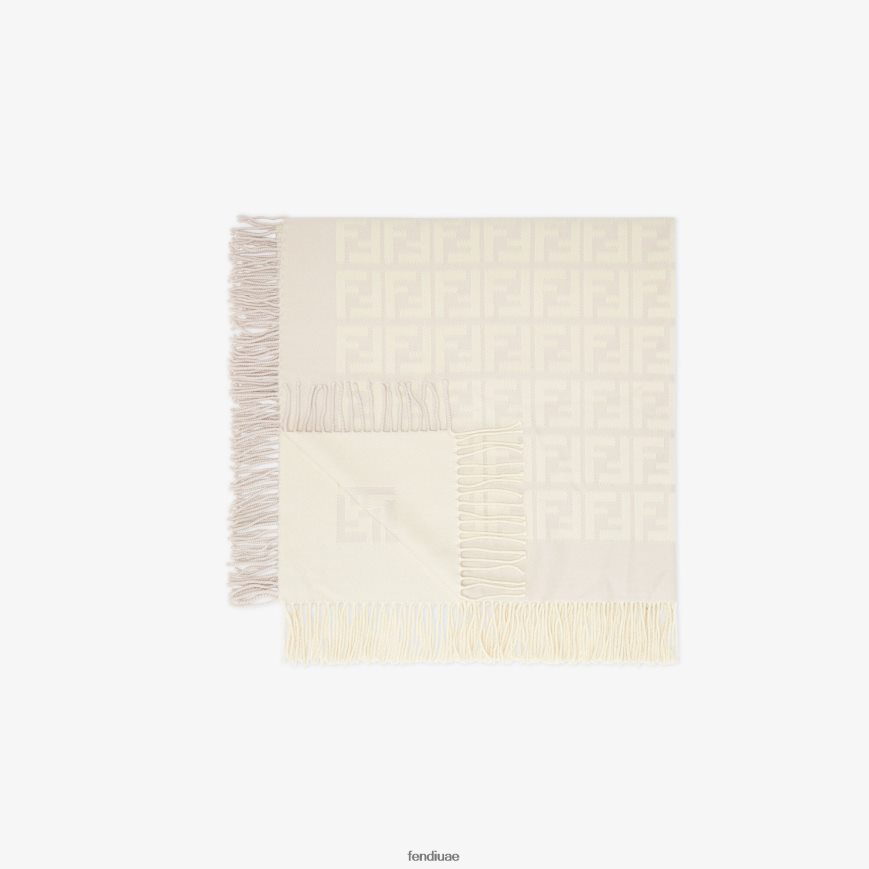 بطانية أطفال ماكسي مقاس 100 × 100 سم مع شراشيب من الصوف البيج والكريمي والكشمير تتميز بتأثير ثلاثي الأبعاد متباين وتفاصيل شعار ff بالكامل.