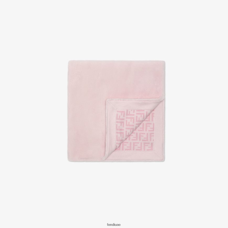 بطانية أطفال بمقاس 80 سم × 80 سم (31.5 × 31.5 بوصة)، أحد الجانبين مصنوع من فرو المنك المقصوص باللون الوردي الناعم مع شعار ff باللون الأبيض والجانب الآخر مصنوع من نسيج القطن والكشمير مع شعار ff باللون الوردي المتباين.