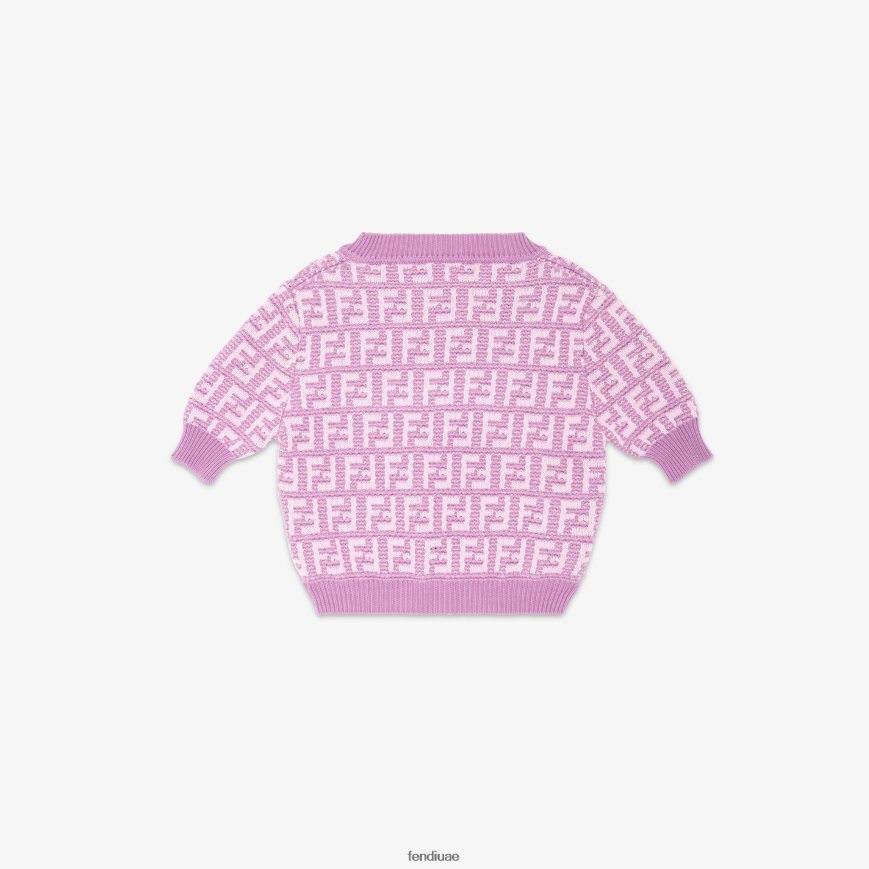بلوزة متماسكة من القطن باللون الليلكي أرجواني Fendi أطفال ثياب TNL80L2929