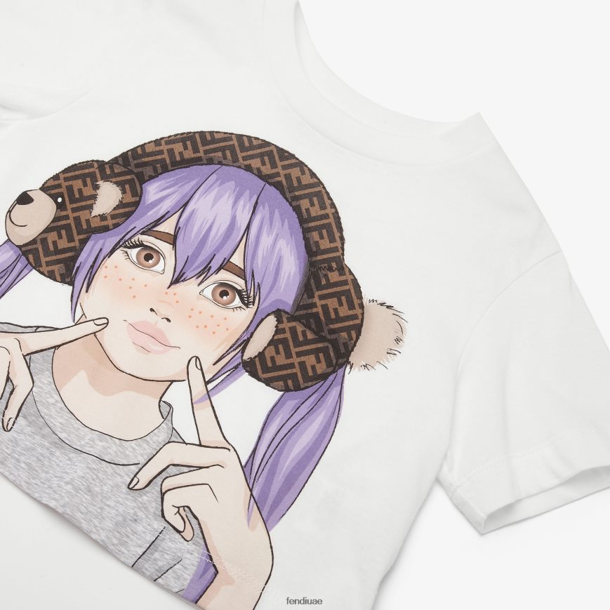 تيشيرت جيرسي قصير بطبعات متعددة أبيض Fendi أطفال ثياب TNL80L2875