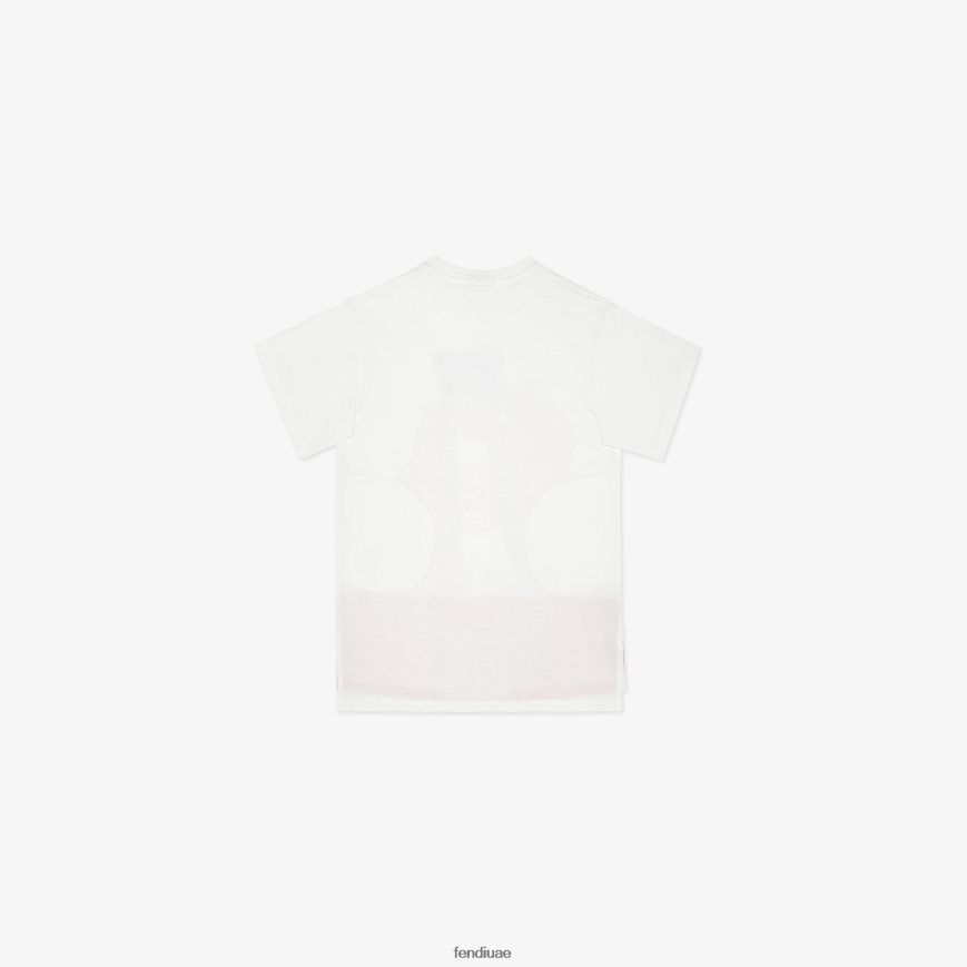 تيشيرت جيرسي ماكسي بطبعات متعددة أبيض Fendi أطفال ثياب TNL80L2907