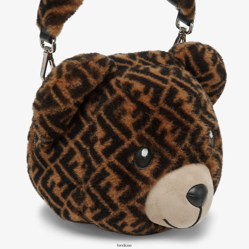 حقيبة الدب فندي جونيور من الشيرلنغ مع شعار ff بلون التبغ بالكامل.