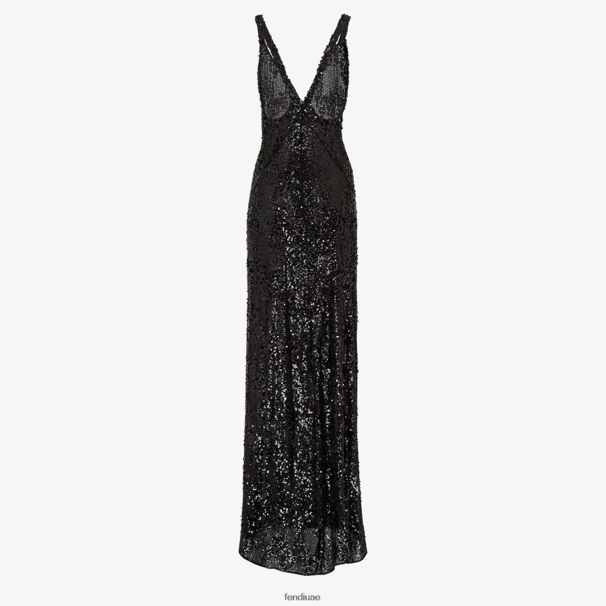 فستان الترتر والشيفون أسود Fendi نحيف ثياب TNL80L1184
