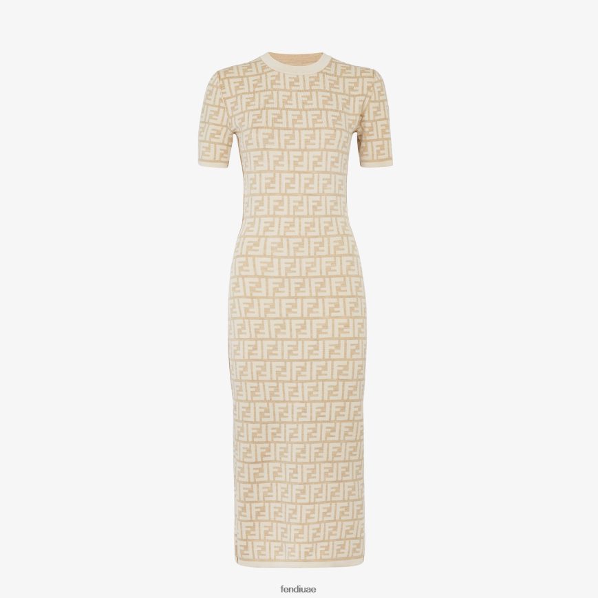 فستان من الصوف اللون البيج Fendi نحيف ثياب TNL80L1082