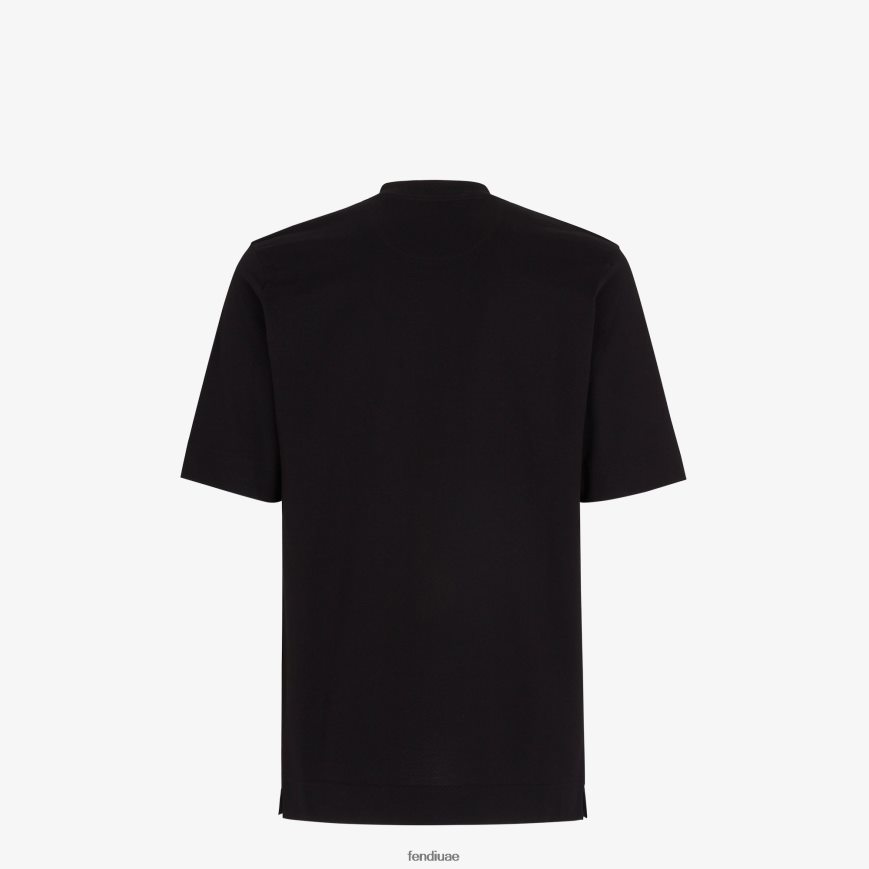 تي شيرت جيرسي أسود Fendi رجال ثياب TNL80L2052