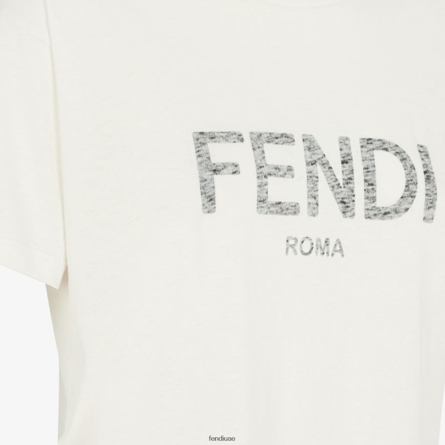 تي شيرت جيرسي أبيض Fendi نحيف ثياب TNL80L950