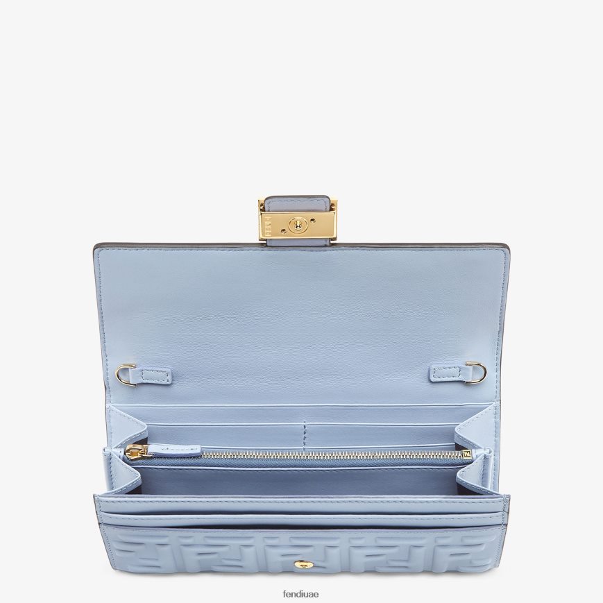 محفظة باجيت كونتيننتال مع سلسلة من جلد نابا أزرق فاتح Fendi نحيف مُكَمِّلات TNL80L1422