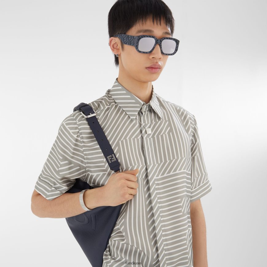 نظارة فندي مستطيلة الشكل. هيكل من النايلون الرمادي الداكن باستخدام تقنية الطباعة ثلاثية الأبعاد وزخرفة مخططة على الإطار بأكمله. عدسات مرآة باللون الرمادي.