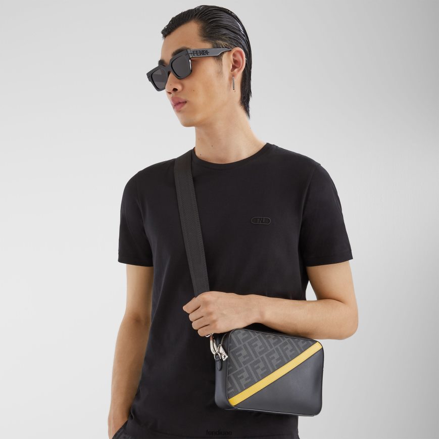 نظارات فنديغرافي مستطيلة من الأسيتات باللون الأسود. أذرع عريضة بحروف فندي معدنية سوداء. عدسات باللون الرمادي الداكن.