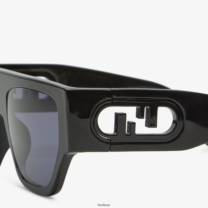 نظارات مربعة الشكل من الأسيتات باللون الأسود. أذرع بقفل معدني متناسق وعدسات زرقاء.