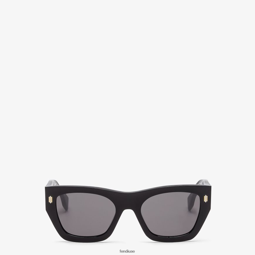 نظارة شمسية فندي روما مستطيلة الشكل مصنوعة من الأسيتات باللون الأسود. أذرع ذات نواة معدنية مرئية محفورة بالليزر. شعار فندي روما باللون الذهبي على الجانبين. عدسات رمادية.