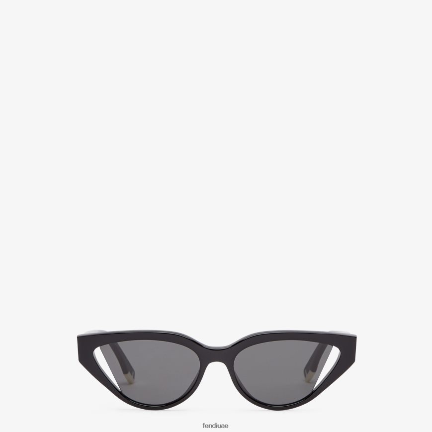 تم تقديم هذه النظارات الشمسية على شكل عين القطة من الأسيتات الأسود في عرض أزياء خريف/شتاء 21، وتتميز بعدسات رمادية داكنة مقطوعة قطريًا مع حدود بيضاء.